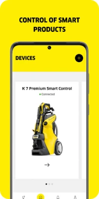 The Home & Garden app makes managing and controlling cleaning appliances child's play. It allows you to register smart Kärcher appliances and optionally control them via your smartphone using Bluetooth.