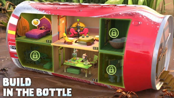 A blade of grass, a can, or anything else may become part of your shelter. Give full reign to your creative side and build a unique and safe base camp in this miniature world. In addition, you can also collect materials to freely craft home decor and plant mushrooms to cook a feast. What's the point of surviving if you're not actually living after all?