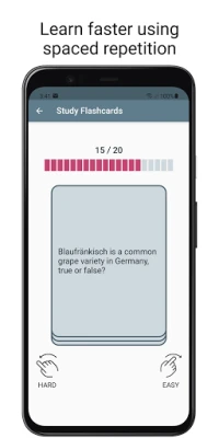 Cork Dork Wine Study uses proven techniques from cognitive science which adapt to your memory and wine knowledge. Spaced repetition and interval-based active recall helps you maximize wine knowledge retention. Difficult flashcards appear more often, easy flashcards appear less often. You remember more with less effort. Wine study has never been easier!